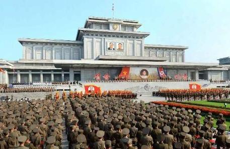朝鮮陸海空三軍誓師大會在平壤錦繡山太陽宮前舉行。