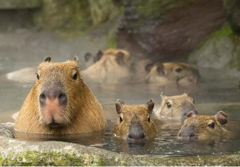 作為南美原產老鼠的伙伴,西海市動植物園飼養42只水豚。水豚生性怕冷,為讓它們舒適過冬,動植物園方面在室外的飼養區設置露天溫泉及暖爐,并讓游人參觀水豚泡溫泉。