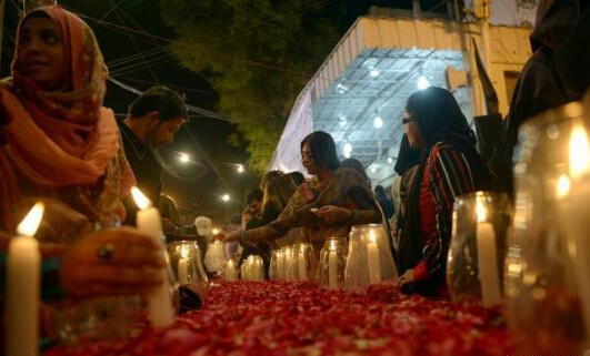 當地時間12月16日,巴基斯坦,市民們點蠟燭悼念在襲擊中的死傷者。塔利班武裝分子襲擊了巴基斯坦白沙瓦陸軍公立學校。軍方發言人稱襲擊造成141遇害,其中132人是學生,另有9名教職人員。