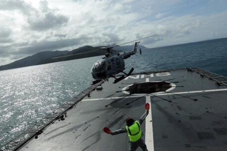 當地時間2014年12月28日,印尼民丹島,印尼海軍救援隊參加亞航QZ8501搜尋任務。