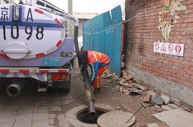解說:早晨7點的鐘,記者跟著抽糞女工李萌一起開車到了天壇南邊的琉璃井,抽糞車停下以后以下,李萌開始把比她身長還長的大管子從車上搬下來,推開井蓋,把管子伸進去,抽第一個井。
