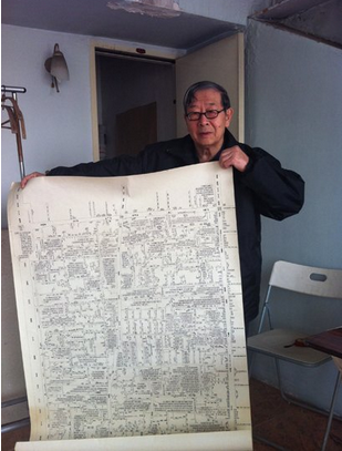 記者:就這樣八年的時間在忙碌中匆匆而過,這些年舒老先生除了常到胡同里測量一些數據外,平時很少出門,長期伏案畫圖,讓舒老先生的視力變得很差,但憑著頑強的毅力,他最終在今年完成了北京胡同全圖的繪制。