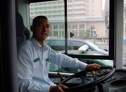 解說:7:25分孟大鵬駕駛著53501編號的公交車駛出廠站,也開始了他一天的工作。