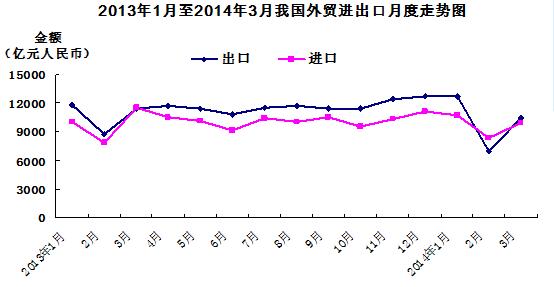 3月份,我國進出口總值2.03萬億元人民幣,下降11.5%。其中,出口1.04萬億元,下降9.2%;進口0.99萬億元,下降13.8%;貿易順差468.6億元,去年同期為貿易逆差67.1億元
