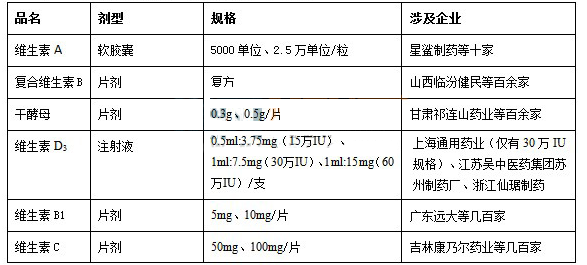 本次增選的維生素類藥物有維生素A等六種藥物三種劑型的多個規格,涉及的廠家眾多。