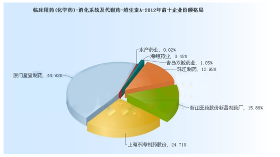維生素A是構成視紫紅質的成分之一,參與形成暗視覺;維持上皮細胞完整性;促進生長發育,對嬰兒特別重要;還促進胸腺增生,增強免疫功能;常用于夜盲癥、干眼病、角膜軟化癥等。維生素A屬于脂溶性維生素,其軟膠囊的劑型由于技術含量較高,生產企業相對少一些,就其企業的市場表現看,廈門星鯊制藥在2009年成功登頂第一寶座后,一直保持四成以上份額。