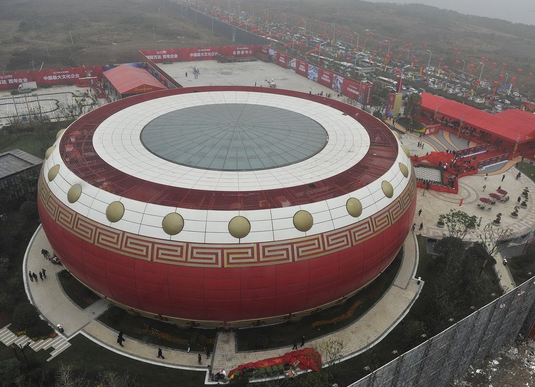 11月2日,安徽合肥濱湖新區,直徑61米高18米,以鳳陽花鼓為造型的鼓型建筑正式開放,據悉這座被譽為世界最大鼓型建筑正在申報吉尼斯紀錄。當天開放儀式現場著名影星甄子丹現身捧場,四臺直升機盤旋,吸引了萬余當地市民,該建筑為投資300億元的萬達文化旅游城的展示中心。