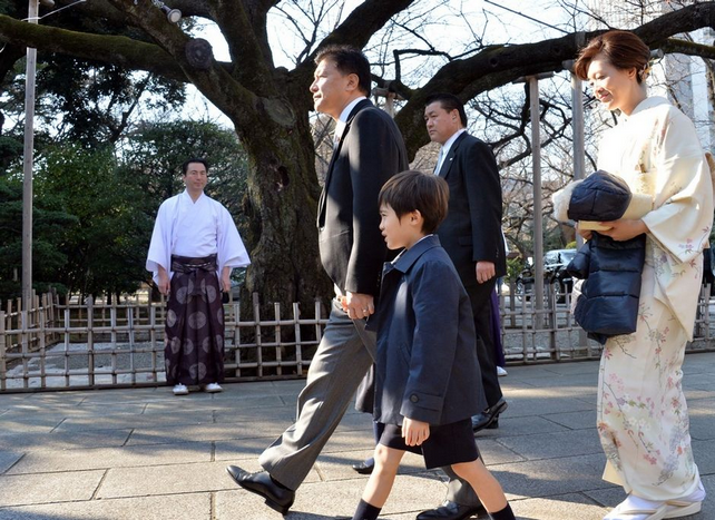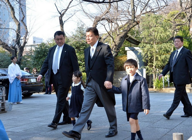 日本內閣大臣帶老婆孩子參拜靖國神社