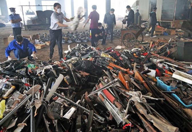 長沙警(jing)方用(yong)熔爐(lu)銷毀各類收繳槍(qiang)支(zhi)(zhi)4236支(zhi)(zhi)