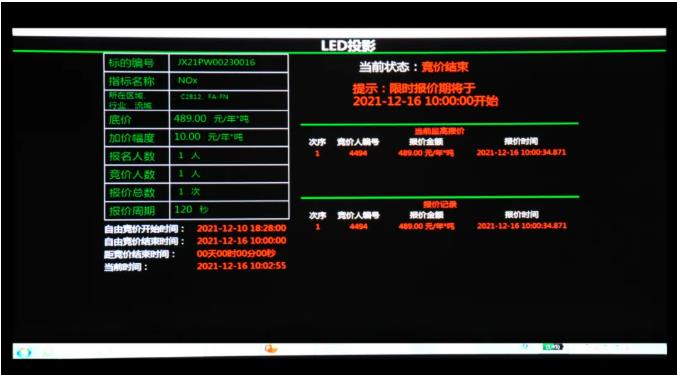 當日,九江市2家企業參與首單交易,德安景能生態環保科技有限公司競買獲得九江金源化纖有限公司出售的二氧化硫與氮氧化物指標,二氧化硫交易96噸,成交價389元/噸•年,交易期限5年,成交總金額18.672萬元;氮氧化物交易137噸,成交價489元/噸•年,交易期限5年,成交總金額33.4965萬元。