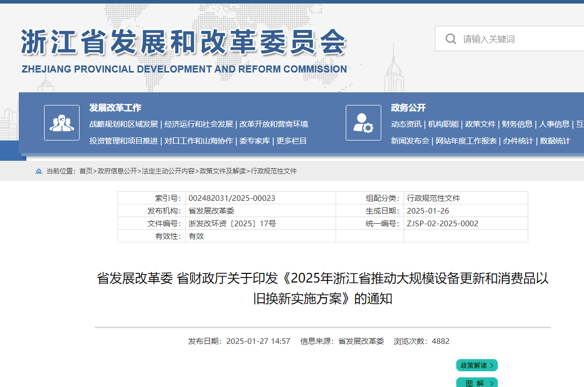 近日,《2025年浙江省推動大規模設備更新和消費品以舊換新實施方案》(以下簡稱“《方案》)發布,為浙江省的經濟發展和資源循環利用注入了新的活力。