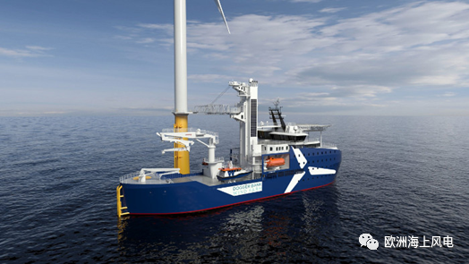 這艘船由Kongsberg Maritime設計,長90米,寬19.6米,設計航速13節,采用混合動力系統,可支持海上風電場建設期的調試工作和投運后的運維工作,配備MacGregor的運動補償舷梯和運動補償起重機。