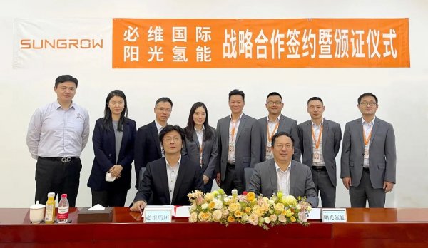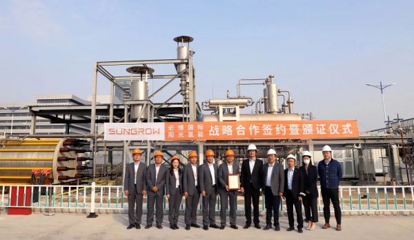 11月3日,陽光氫能與必維集團戰略合作簽約暨頒證儀式在合肥隆重舉行,陽光氫能1000Nm³/h堿性水電解制氫系統榮獲國際認證。必維集團技術中心總經理葉炯、氫能業務總監劉忠勇,陽光電源副總裁兼陽光氫能董事長彭超才、研發中心總經理孫龍林、市場營銷總經理方偉等領導出席儀式。