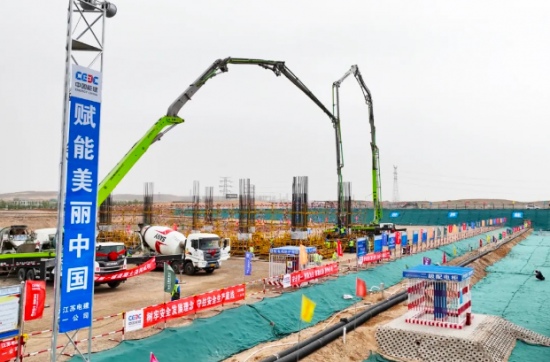 近日,中國能源建設集團有限公司參與設計施工的全國首批“沙戈荒”新能源基地調峰電源項目——寧夏中衛電廠4×660兆瓦機組擴建工程舉行了第一罐混凝土澆筑儀式,標志著項目全面開工。