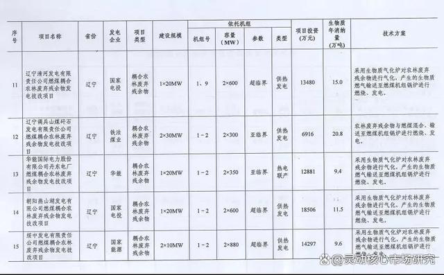 耦合農林廢棄殘余物發電技改項目:分布廣泛,如河北建投任丘熱電有限責任公司、華能國際電力股份有限公司上安電廠、遼寧清河發電有限責任公司等均有此類項目。主要是對農作物秸稈、林業廢棄物等進行收集、預處理后,與燃煤在鍋爐中耦合燃燒發電,不僅可以減少農林廢棄物的露天焚燒,還能產生清潔能源。