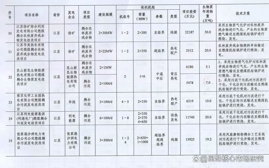 30.江蘇省徐州市,江蘇徐礦綜合利用發電有限公司燃煤耦合農林廢棄殘余物發電技改項目;