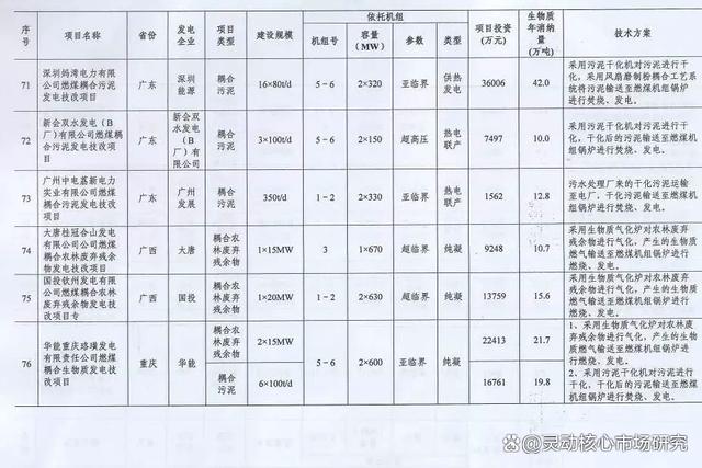 耦合污泥發電技改項目:較多地區涉及,如天津華能楊柳青熱電有限責任公司耦合污泥 5100 噸 / 日、河北華電石家莊裕華熱電有限公司耦合污泥 8100噸 / 日、上海外高橋第三發電有限責任公司耦合污泥 320 噸 /日等。這些項目主要是利用城市污水處理廠產生的污泥,將其干燥后與燃煤混合燃燒發電,實現污泥的無害化處理和資源化利用。