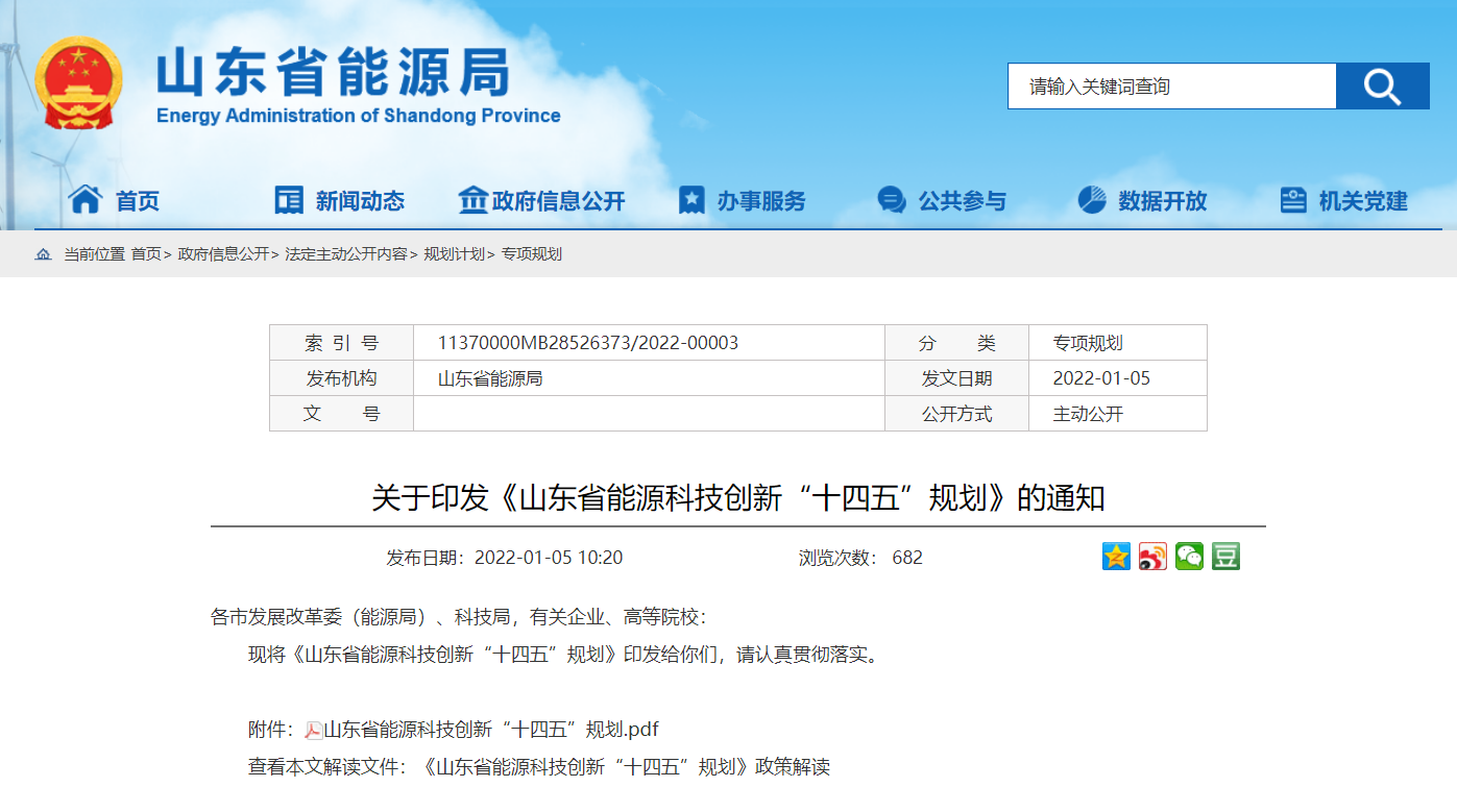 近日,山(shan)東(dong)省(sheng)能(neng)源(yuan)局(ju)發布《關于印發《山(shan)東(dong)省(sheng)能(neng)源(yuan)科技創新(xin)“十(shi)四五”規劃(hua)》的通知(zhi)》(以下簡稱《規劃(hua)》)。