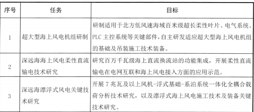 《規劃》明確,要聚焦(jiao)新能(neng)源、新型(xing)電(dian)(dian)(dian)力(li)系(xi)統、能(neng)源智慧化、安全綠色開(kai)發(fa)、按照集(ji)中攻關一批(pi)、示(shi)范(fan)試(shi)(shi)驗一批(pi)、應用(yong)(yong)(yong)推廣一批(pi)分(fen)類推進思路,加快關鍵(jian)核心技(ji)術(shu)裝備(bei)研(yan)發(fa)和(he)推廣應用(yong)(yong)(yong),提升(sheng)能(neng)源科技(ji)創新能(neng)力(li)。在風(feng)(feng)能(neng)利用(yong)(yong)(yong)技(ji)術(shu)方面,研(yan)究新型(xing)高效低成(cheng)本陸(lu)地(di)、海上風(feng)(feng)力(li)發(fa)電(dian)(dian)(dian)關鍵(jian)技(ji)術(shu),開(kai)展(zhan)7兆瓦等(deng)級及以(yi)上大型(xing)風(feng)(feng)電(dian)(dian)(dian)機(ji)組和(he)低風(feng)(feng)速(su)風(feng)(feng)電(dian)(dian)(dian)機(ji)組示(shi)范(fan)。攻關低風(feng)(feng)速(su)、大容量、防(fang)鹽霧風(feng)(feng)電(dian)(dian)(dian)機(ji)組等(deng)共(gong)性應用(yong)(yong)(yong)技(ji)術(shu),開(kai)展(zhan)風(feng)(feng)電(dian)(dian)(dian)機(ji)組集(ji)成(cheng)、遠距離輸電(dian)(dian)(dian)、新型(xing)風(feng)(feng)機(ji)基礎等(deng)技(ji)術(shu)研(yan)發(fa)。實施(shi)深(shen)遠海海上風(feng)(feng)電(dian)(dian)(dian)柔性直流(liu)集(ji)中送出示(shi)范(fan)工程,示(shi)范(fan)試(shi)(shi)驗海上風(feng)(feng)電(dian)(dian)(dian)與海洋(yang)牧場、海上制氫綜合開(kai)發(fa)利用(yong)(yong)(yong)技(ji)術(shu)。