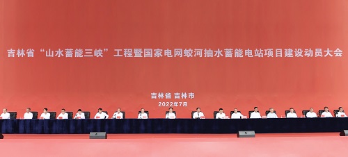 7月30日,吉林省“山水蓄能三峽”工程暨國家電網蛟河抽水蓄能電站項目建設動員大會召開。會議深入貫徹習近平總書記關于“雙碳”重要論述和能源電力保供重要指示精神,完整、準確、全面貫徹新發展理念,推動新時代吉林全面振興,全力服務穩經濟穩增長,以實際行動迎接黨的二十大勝利召開。吉林省委書記景俊海,省委副書記、省長韓俊,國家電網有限公司董事長、黨組書記辛保安,吉林省委常委、秘書長李偉,公司副總經理、黨組成員潘敬東出席動員大會,吉林省副省長吳靖平主持大會。
