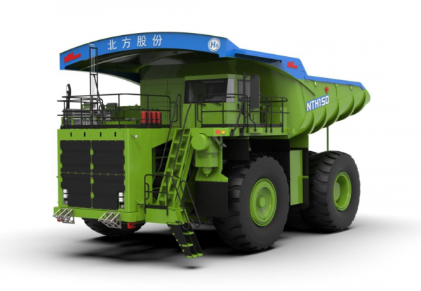 在減碳降排及能源革命的大背景下,為響應“綠色礦山”的建設目標,2022年3月,北重集團北方股份公司與內蒙古電投能源股份有限公司簽署合作協議,共同開發百噸級氫燃料與鋰電池混合動力礦用自卸車,并計劃在南露天煤礦建立包含氫能源礦用車、氫氣儲運、加注的氫能源礦用車綜合應用示范場景。該車型自重115噸,載重136噸,搭載業內領先的質子交換膜燃料電池,搭載70MPa高壓大容量車載儲氫系統,可保證車輛擁有長久的續航。該車型完全以氫氣作為燃料,可實現零排放,與等噸位柴油動力礦用車相比,年減少二氧化碳排放1815噸,約等于600輛乘用車的排放量。