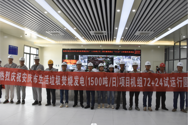 5月14日,中國能建建筑集團與華東院聯合體EPC總承包建設的安慶市生活垃圾焚燒發電(1500噸/日)項目機組,完成72+24小時試運行,機組運行各項指標優良。