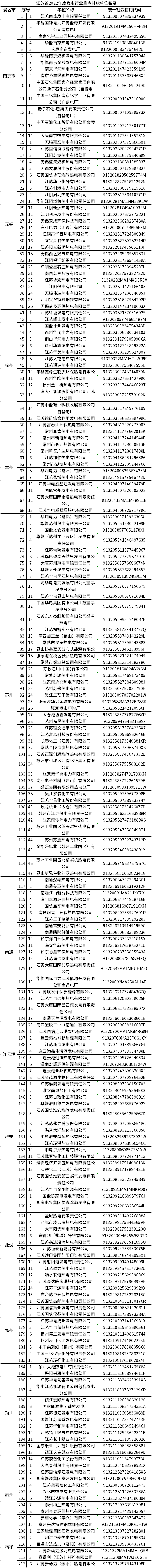 省生態環(huan)境(jing)廳關于(yu)江蘇省2022年度發電行業重(zhong)點排放單位名錄的公示(shi)