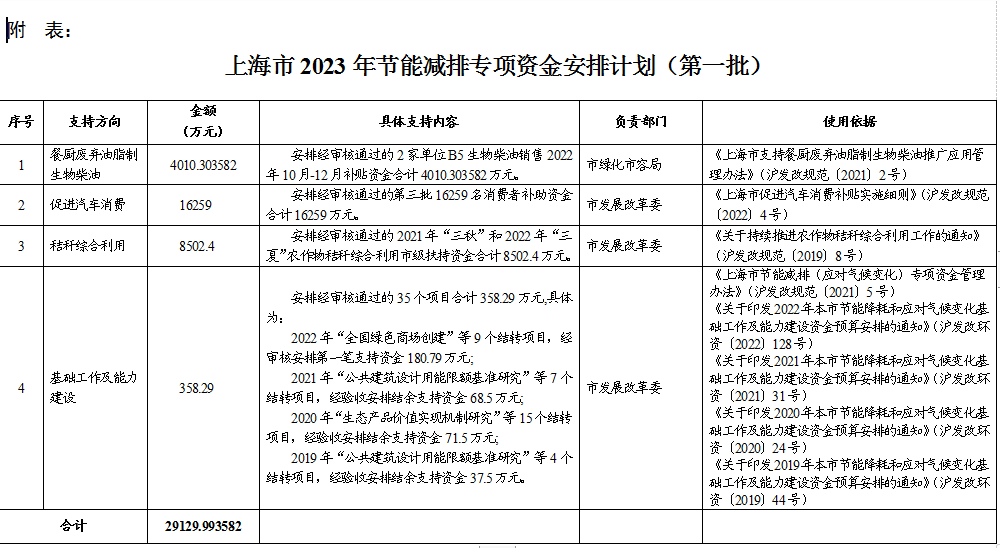 附表:上海市2023年節能減排專項資金安排計劃(第一批)