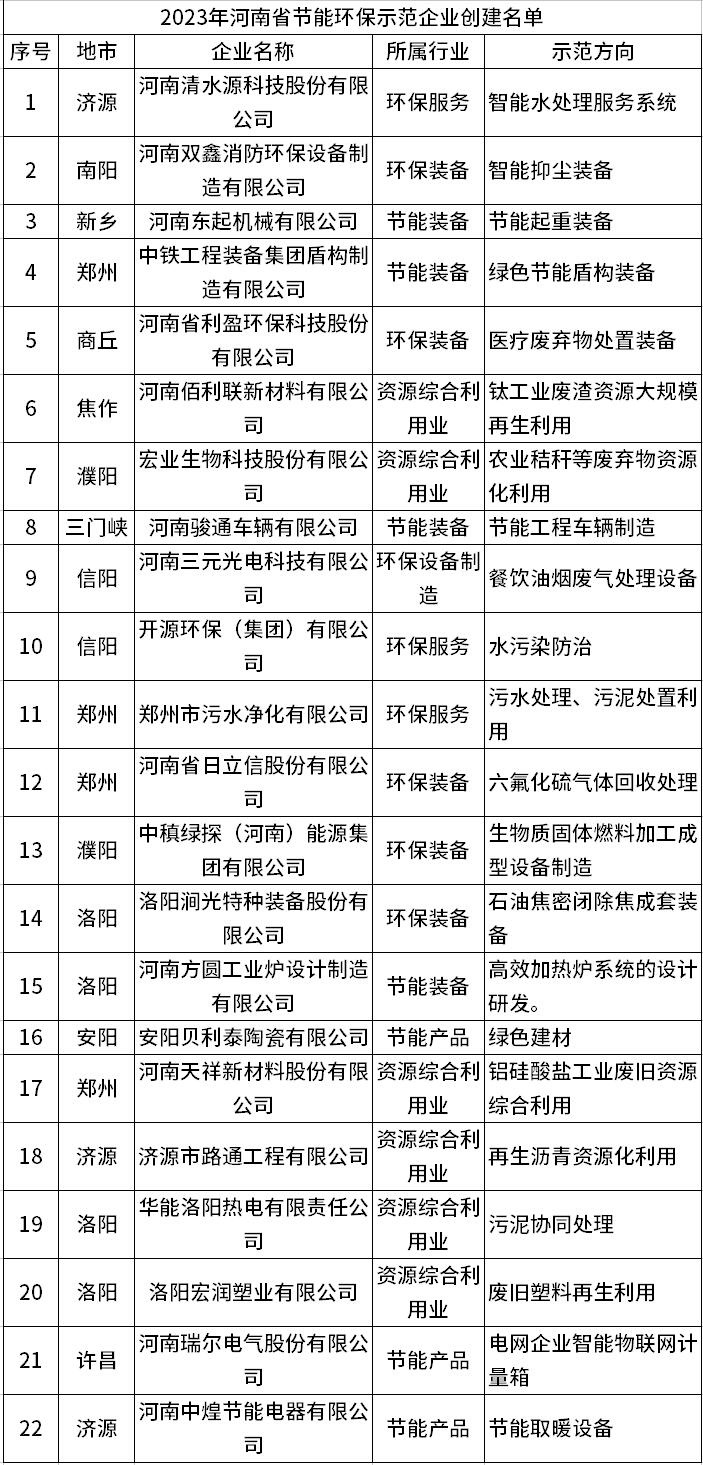 12月25日,河南省發展改革委發布“2023年河南省節能環保示范企業創建名單”,共計22家企業入選。