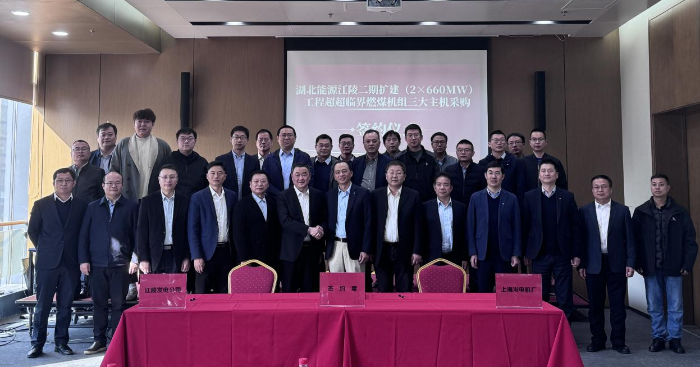 12月7日上午,湖北能源江陵電廠二期擴建(2×660兆瓦)工程三大主機設備采購項目在武漢成功簽約,湖北能源副總經理李海濱、上海電氣電站集團常務副總裁吳煥琪出席簽約儀式。