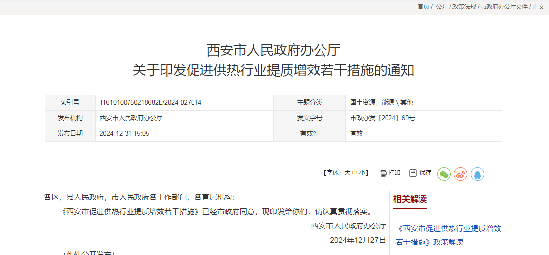 西安(an)市促進供熱行業提(ti)質增效若干措施