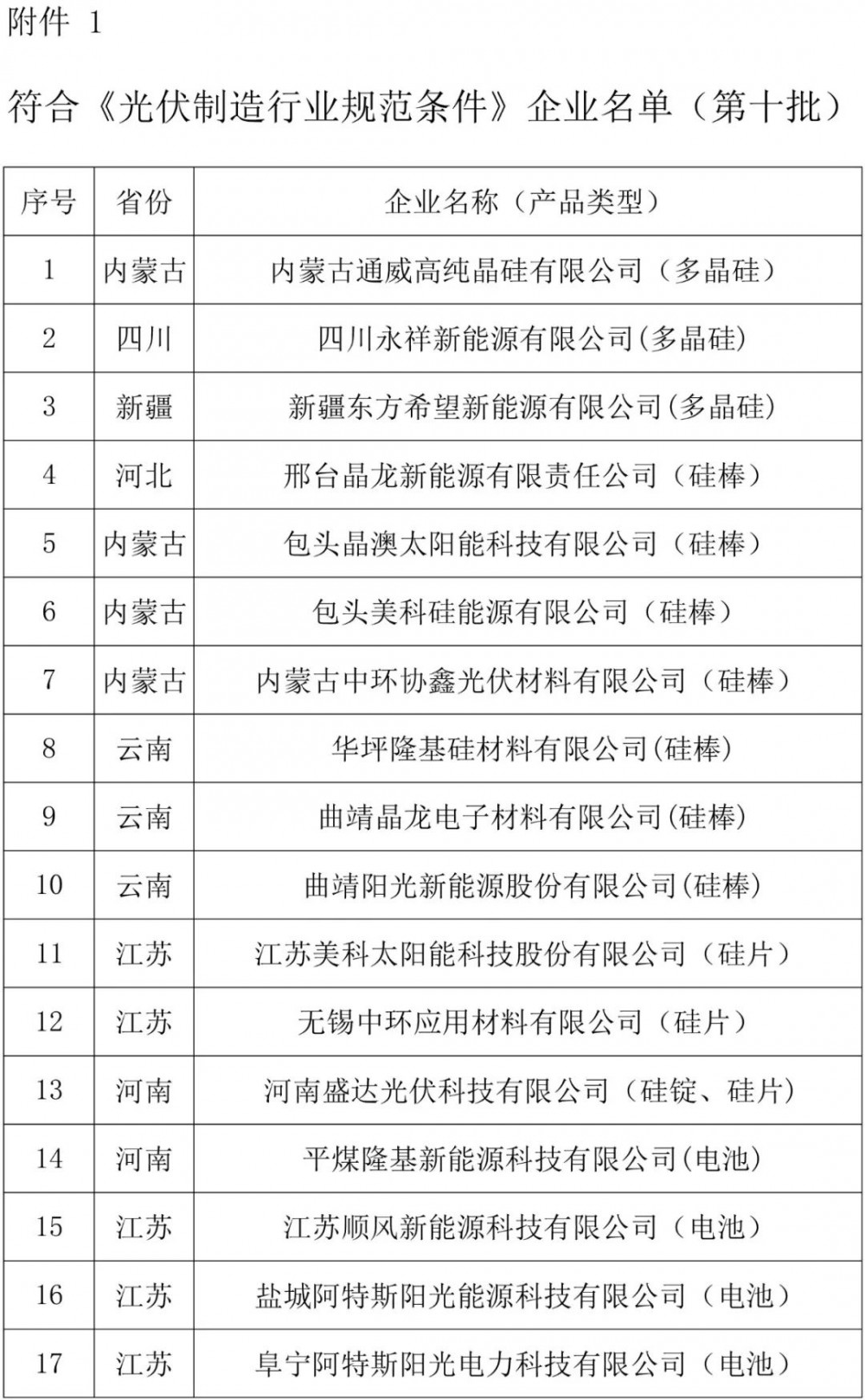 附件:1.符合《光(guang)伏制造行(xing)業規范條件》企(qi)業名單(第(di)十批)