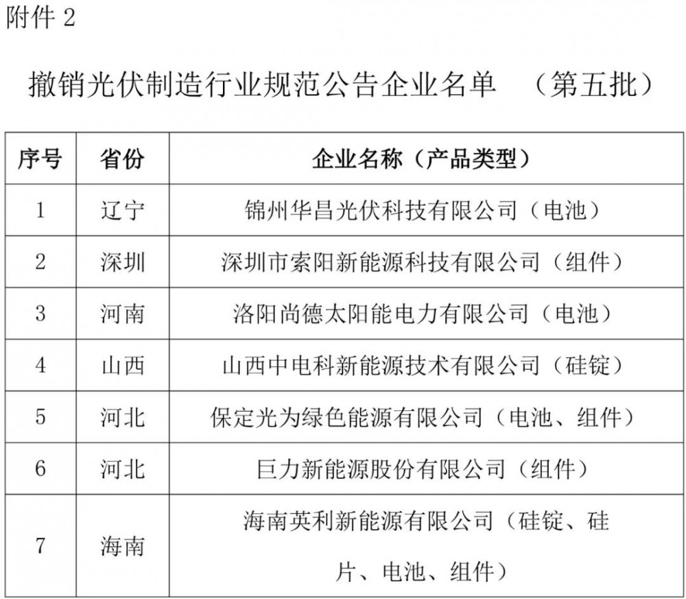 2.撤銷光伏制(zhi)造行業規范公告企業名單(dan)(第(di)五批)