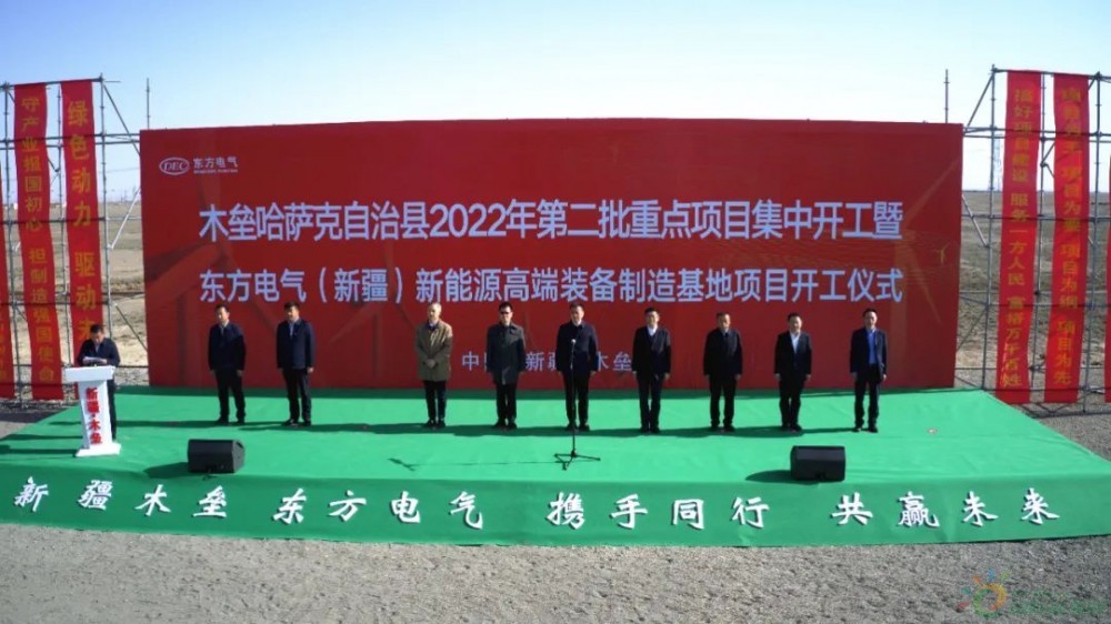 4月16日,木壘縣舉行2022年第二批重點項目集中開工暨東方電氣(新疆)新能源高端裝備制造基地項目、木壘縣2022年百萬千瓦風光電項目開工儀式。