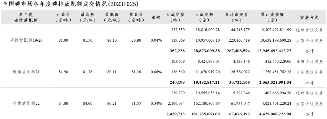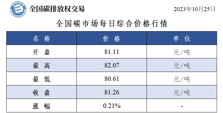 原標題:全國碳市場(chang)每(mei)日綜合價(jia)格(ge)行情(qing)及成交信息20231025